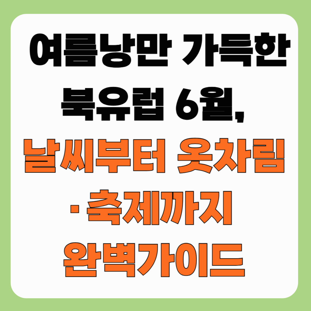 본 포스팅에서는 스웨덴, 노르웨이, 핀란드, 덴마크, 아이슬란드 등 북유럽 주요 국가의 6월 날씨 특징과 옷차림, 여행 팁, 체크리스트, 그리고 북유럽 6월에만 즐길 수 있는 축제 정보까지 꼼꼼하게 정리했습니다.